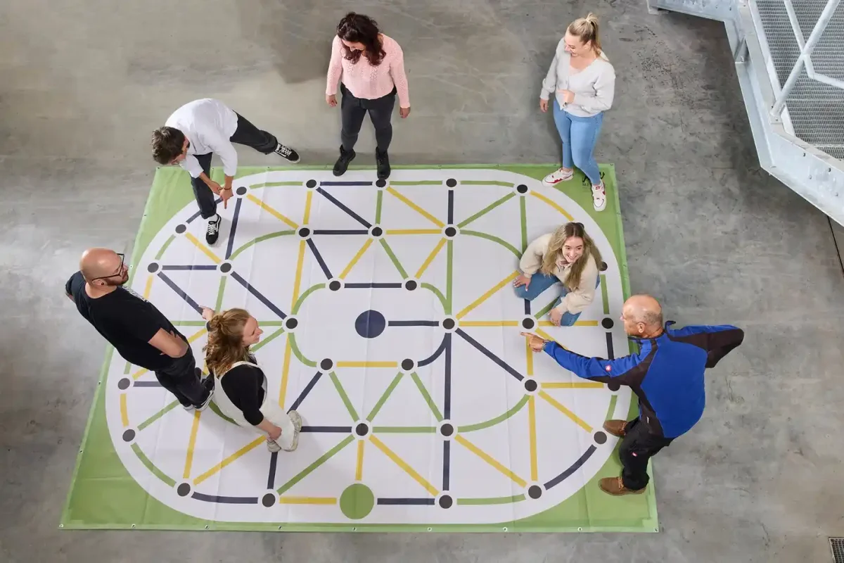 In Corridoi di Colore, l’obiettivo è attraversare un labirinto colorato con lucidità mentale e una strategia intelligente: comunicazione e spirito di squadra sono le chiavi del successo. Solo chi sa distribuire i compiti in modo sensato, adotta una leadership dinamica e mantiene l’orientamento insieme agli altri potrà raggiungere il traguardo.